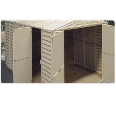 They are reinforce with metal inserted columns for even greater rigidity and strength. This garage can handle at least 20 lbs per square foot of snow and comes with 88″ double doors that are wide enough to drive a common tractors. Their attractive design and neutral ivory color go well anywhere. All garages come with a free foundation kit.
